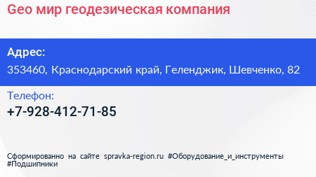 Geo мир, геодезическая компания по адресу 353460, Краснодарский край, Геленджик, Шевченко, 82 в дальнейшем Организация, размещена в следующих категориях: