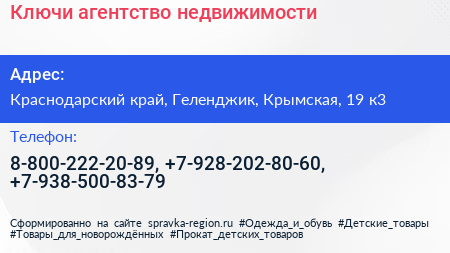 Ключи, агентство недвижимости по адресу Краснодарский край, Геленджик, Крымская, 19 к3 в дальнейшем Организация, размещена в следующих категориях: