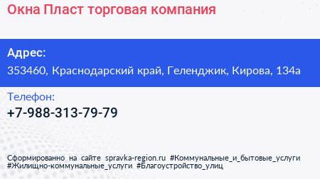 Окна-Пласт, торговая компания по адресу 353460, Краснодарский край, Геленджик, Кирова, 134а в дальнейшем Организация, размещена в следующих категориях: