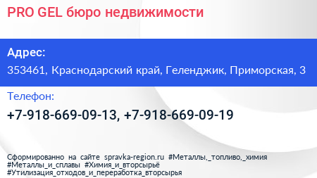 PRO-GEL, бюро недвижимости по адресу 353461, Краснодарский край, Геленджик, Приморская, 3 в дальнейшем Организация, размещена в следующих категориях: