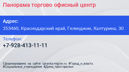 Панорама, торгово-офисный центр по адресу 353460, Краснодарский край, Геленджик, Халтурина, 30 в дальнейшем Организация, размещена в следующих категориях: