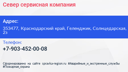 Север, сервисная компания по адресу 353477, Краснодарский край, Геленджик, Солнцедарская, 2з в дальнейшем Организация, размещена в следующих категориях: