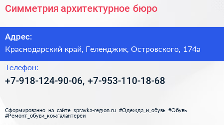 Симметрия, архитектурное бюро по адресу Краснодарский край, Геленджик, Островского, 174а в дальнейшем Организация, размещена в следующих категориях: