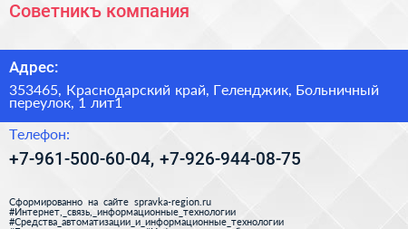 Советникъ, компания по адресу 353465, Краснодарский край, Геленджик, Больничный переулок, 1 лит1 в дальнейшем Организация, размещена в следующих категориях: