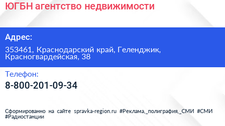 ЮГБН, агентство недвижимости по адресу 353461, Краснодарский край, Геленджик, Красногвардейская, 38 в дальнейшем Организация, размещена в следующих категориях:
