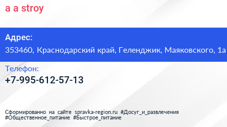 a a stroy по адресу 353460, Краснодарский край, Геленджик, Маяковского, 1а в дальнейшем Организация, размещена в следующих категориях: