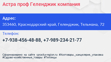 Астра проф Геленджик, компания по адресу 353460, Краснодарский край, Геленджик, Тельмана, 72 в дальнейшем Организация, размещена в следующих категориях: