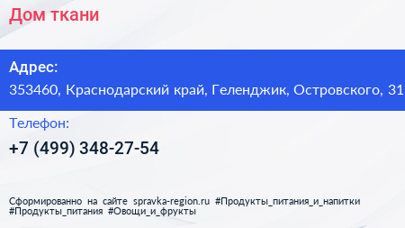 Дом ткани по адресу 353460, Краснодарский край, Геленджик, Островского, 31 в дальнейшем Организация, размещена в следующих категориях: