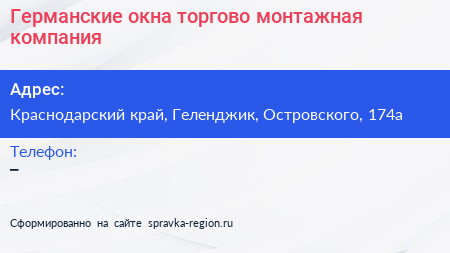Германские окна, торгово-монтажная компания по адресу Краснодарский край, Геленджик, Островского, 174а в дальнейшем Организация, размещена в следующих категориях: