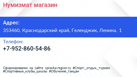 Нумизмат, магазин по адресу 353460, Краснодарский край, Геленджик, Ленина, 1 в дальнейшем Организация, размещена в следующих категориях: