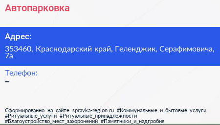 Автопарковка по адресу 353460, Краснодарский край, Геленджик, Серафимовича, 7а в дальнейшем Организация, размещена в следующих категориях:
