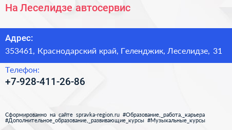 На Леселидзе, автосервис по адресу 353461, Краснодарский край, Геленджик, Леселидзе, 31 в дальнейшем Организация, размещена в следующих категориях:
