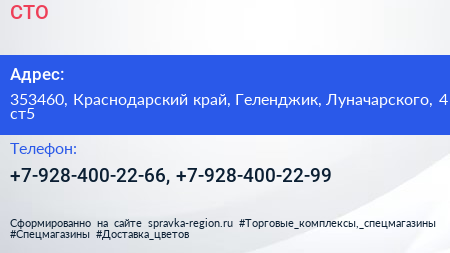 СТО по адресу 353460, Краснодарский край, Геленджик, Луначарского, 4 ст5 в дальнейшем Организация, размещена в следующих категориях: