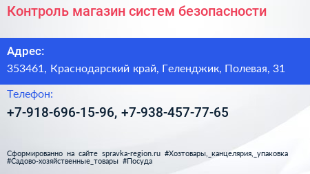 Контроль, магазин систем безопасности по адресу 353461, Краснодарский край, Геленджик, Полевая, 31 в дальнейшем Организация, размещена в следующих категориях: