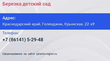 Березка, детский сад по адресу Краснодарский край, Геленджик, Крымская, 22 к9 в дальнейшем Организация, размещена в следующих категориях: