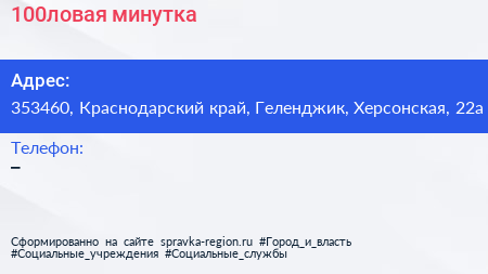 100ловая минутка по адресу 353460, Краснодарский край, Геленджик, Херсонская, 22а в дальнейшем Организация, размещена в следующих категориях: