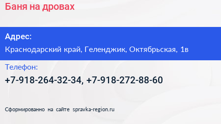 Баня на дровах по адресу Краснодарский край, Геленджик, Октябрьская, 1в в дальнейшем Организация, размещена в следующих категориях: