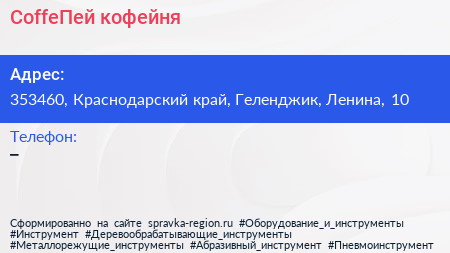 CoffeПей, кофейня по адресу 353460, Краснодарский край, Геленджик, Ленина, 10 в дальнейшем Организация, размещена в следующих категориях: