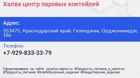 Халва, центр паровых коктейлей по адресу 353475, Краснодарский край, Геленджик, Орджоникидзе, 18а в дальнейшем Организация, размещена в следующих категориях: