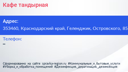 Кафе-тандырная по адресу 353460, Краснодарский край, Геленджик, Островского, 85 в дальнейшем Организация, размещена в следующих категориях: