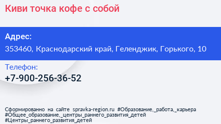 Киви, точка кофе с собой по адресу 353460, Краснодарский край, Геленджик, Горького, 10 в дальнейшем Организация, размещена в следующих категориях: