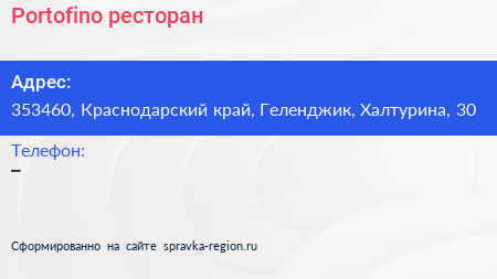 Portofino, ресторан по адресу 353460, Краснодарский край, Геленджик, Халтурина, 30 в дальнейшем Организация, размещена в следующих категориях: