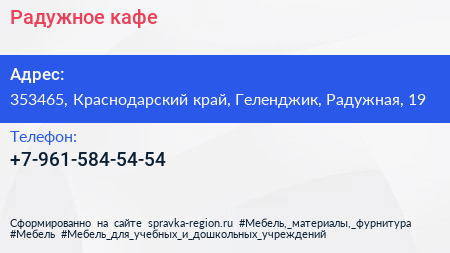 Радужное, кафе по адресу 353465, Краснодарский край, Геленджик, Радужная, 19 в дальнейшем Организация, размещена в следующих категориях: