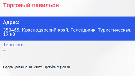 Торговый павильон по адресу 353465, Краснодарский край, Геленджик, Туристическая, 19 к8 в дальнейшем Организация, размещена в следующих категориях: