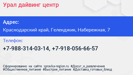 Урал, дайвинг-центр по адресу Краснодарский край, Геленджик, Набережная, 7 в дальнейшем Организация, размещена в следующих категориях: