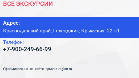 ВСЕ ЭКСКУРСИИ по адресу Краснодарский край, Геленджик, Крымская, 22 к1 в дальнейшем Организация, размещена в следующих категориях:
