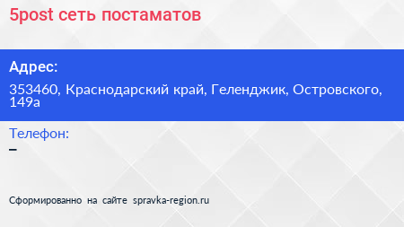 5post, сеть постаматов по адресу 353460, Краснодарский край, Геленджик, Островского, 149а в дальнейшем Организация, размещена в следующих категориях: