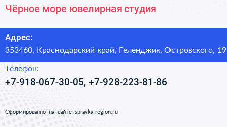 Чёрное море, ювелирная студия по адресу 353460, Краснодарский край, Геленджик, Островского, 19 в дальнейшем Организация, размещена в следующих категориях: