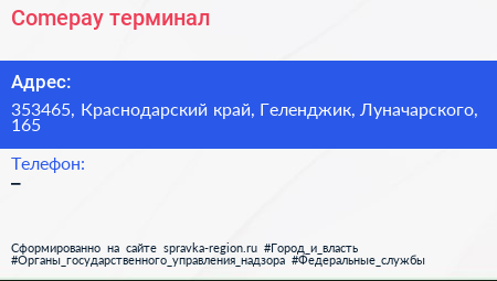 Comepay, терминал по адресу 353465, Краснодарский край, Геленджик, Луначарского, 165 в дальнейшем Организация, размещена в следующих категориях:
