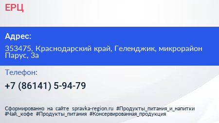 ЕРЦ по адресу 353475, Краснодарский край, Геленджик, микрорайон Парус, 3а в дальнейшем Организация, размещена в следующих категориях: