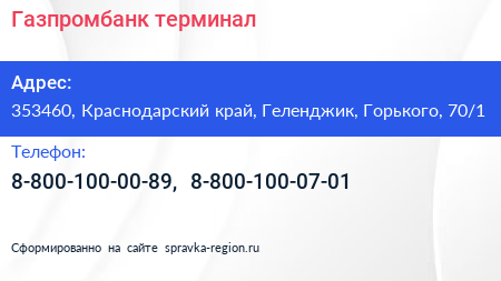 Газпромбанк, терминал по адресу 353460, Краснодарский край, Геленджик, Горького, 70/1 в дальнейшем Организация, размещена в следующих категориях: