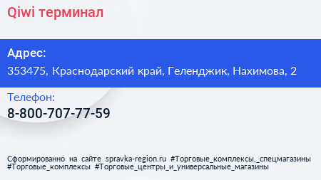 Qiwi, терминал по адресу 353475, Краснодарский край, Геленджик, Нахимова, 2 в дальнейшем Организация, размещена в следующих категориях: