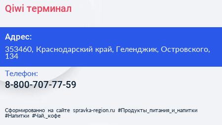 Qiwi, терминал по адресу 353460, Краснодарский край, Геленджик, Островского, 134 в дальнейшем Организация, размещена в следующих категориях: