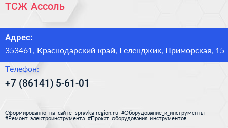 ТСЖ Ассоль по адресу 353461, Краснодарский край, Геленджик, Приморская, 15 в дальнейшем Организация, размещена в следующих категориях: