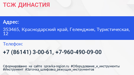 ТСЖ ДИНАСТИЯ по адресу 353465, Краснодарский край, Геленджик, Туристическая, 12 в дальнейшем Организация, размещена в следующих категориях: