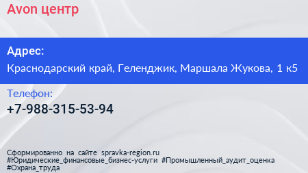 Avon, центр по адресу Краснодарский край, Геленджик, Маршала Жукова, 1 к5 в дальнейшем Организация, размещена в следующих категориях: