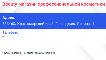 Beauty, магазин профессиональной косметики по адресу 353460, Краснодарский край, Геленджик, Ленина, 1 в дальнейшем Организация, размещена в следующих категориях: