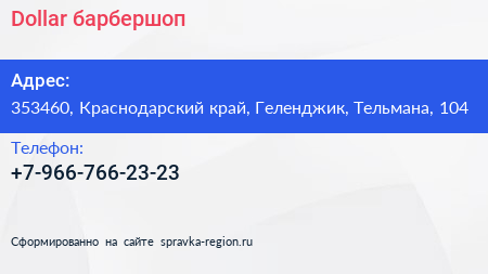 Dollar, барбершоп по адресу 353460, Краснодарский край, Геленджик, Тельмана, 104 в дальнейшем Организация, размещена в следующих категориях:
