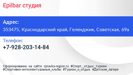 Epilbar, студия по адресу 353475, Краснодарский край, Геленджик, Советская, 69а в дальнейшем Организация, размещена в следующих категориях: