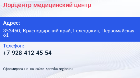 Лорцентр, медицинский центр по адресу 353460, Краснодарский край, Геленджик, Первомайская, 61 в дальнейшем Организация, размещена в следующих категориях: