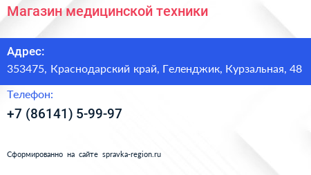 Магазин медицинской техники по адресу 353475, Краснодарский край, Геленджик, Курзальная, 48 в дальнейшем Организация, размещена в следующих категориях: