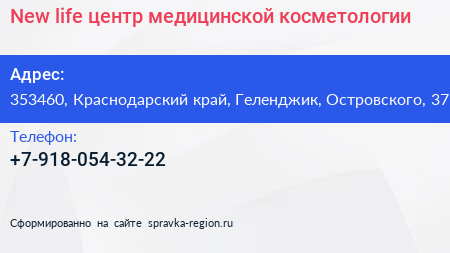 New life, центр медицинской косметологии по адресу 353460, Краснодарский край, Геленджик, Островского, 37 в дальнейшем Организация, размещена в следующих категориях: