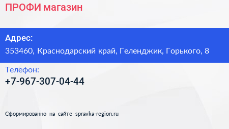 ПРОФИ, магазин по адресу 353460, Краснодарский край, Геленджик, Горького, 8 в дальнейшем Организация, размещена в следующих категориях: