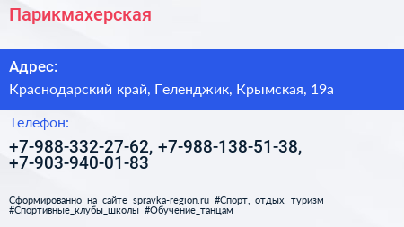 Парикмахерская по адресу Краснодарский край, Геленджик, Крымская, 19а в дальнейшем Организация, размещена в следующих категориях: