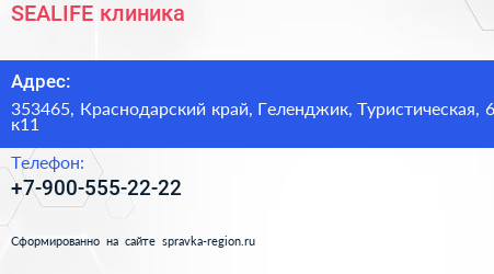 SEALIFE, клиника по адресу 353465, Краснодарский край, Геленджик, Туристическая, 6 к11 в дальнейшем Организация, размещена в следующих категориях: