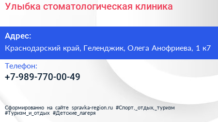 Улыбка, стоматологическая клиника по адресу Краснодарский край, Геленджик, Олега Анофриева, 1 к7 в дальнейшем Организация, размещена в следующих категориях: